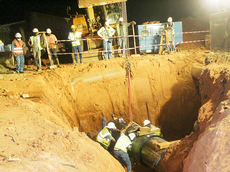 La #SONEB et ses partenaires SOGEA-SATOM et IGIP-Afrique, ont procédé dans la nuit du vendredi 04 mars sous les yeux du DG SONEB Camille DANSOU, aux travaux de raccordement d’une nouvelle conduite d’injection d’une production complémentaire de 300m3/h prélevée depuis le nouveau système d’Abomey-Calavi. Avec cette production additionnelle de 7200 m3/j de l’usine de Godomey, les abonnés des zones de Fidjrossè, Godomey et environs en bout de réseau, seront directement impactés par une amélioration des services.